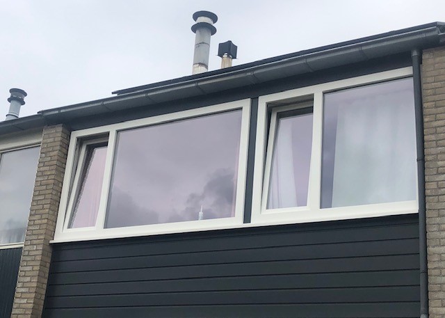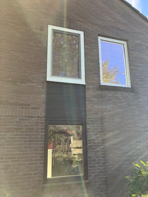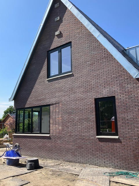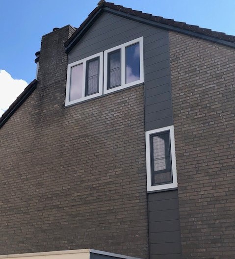 Zijgevel met kunststof kozijnen en keralit