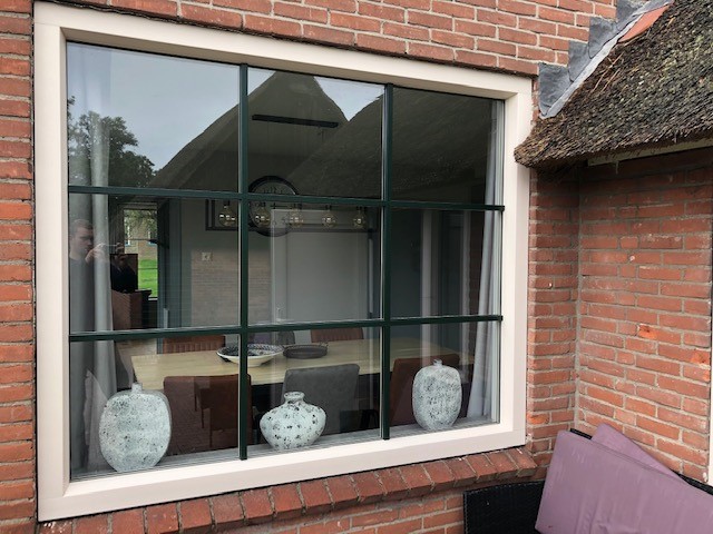 Kunststof kozijn met roedes in het glas